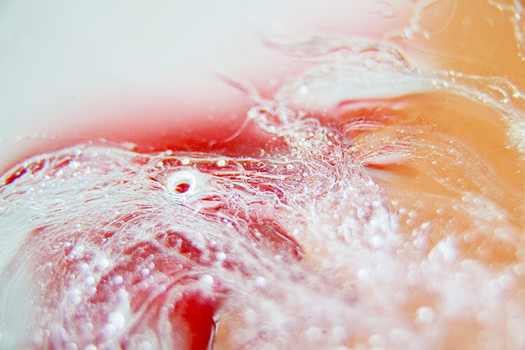 While you are watching the details unfurl beneath the camera lens, don’t forget to experiment with your background too! Add or remove materials, layer new colors, add materials which have a greater or lesser reflective surface. Use a flashlight (torch) to illuminate different areas in the image or shine the light up into the bubbles suspended on the glass.